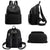 - π MULTIPLE POCKETS : This black backpack for women become instantly organized with the many pockets inside and out. The exterior has 6 pockets: one large zippered pocket on the front, one secondary zippered bag, one front small bag, two side pockets for small water bottles, umbrellas, etc., and a βhiddenβ pocket on the back. INSIDE there's a secure zippered pocket, a zipper compartment. DIMENSION: 12.9" high x 11" wide by 5.9" deep, 1.1 pounds.