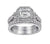 • STYLE: This sparkling antique-style ring set features a halo engagement ring with a 7mm asscher-cut Infinite Elements Cubic Zirconia centerpiece on a 3mm wide half-length Zirconia band. The half eternity wedding band with pave-set Zirconia is 2.8mm on the wide band. The ring set itself weights 2.4 carats in total