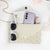 This bride bag is made of durable canvas and has a magnetic snap closure that keeps all your items safe and secure.