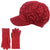 BYOS Womens Winter Warm Lined Flower Cable Knit Newsboy Cabbie Hat & Gloves Set
