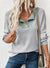 EVALESS Womens Fall Fashion 2025 Long Sleeve Shirts Patchwork Button Up V Neck Sweatshirt for Women Casual Trendy Pullover Teacher Outfits Tops Light Grey Medium