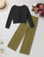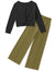 Design: The cute clothes for teen girls black long sleeve top features a classic crewneck and a unique twist design, the army green wide-leg pants in the girls' clothing sets feature an elastic waist for a comfortable fit ideal for all girls