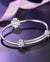 Kim Carrey S925 Silver Bangle Bracelet for Women, Elegant Women‘s Sterling Silver Bracelet Bangle Adjustable 6.4-7.8 inches Small Size (White Clover)