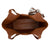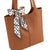 • Slouchy tote purse adorned with a satin scarf, double flat straps, and a top buckle closure.