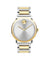 Details: RESILIENT DESIGN: Men's Movado Bold, stainless steel case, silver-toned metallic Museum dial with flat dot, two-tone stainless steel link bracelet, Swiss quartz movement.