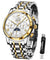 ⌚Multifunctional Dial 6 Hand Design:Meticulously designed 4 calendar functions of year/month/week/day to meet all customer needs. The roman numerals indexes and 24-hour moon phase function enhances the grade of the watch. The refined watch graces the men's everyday and dress wear.