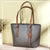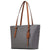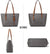 Roomy tote bag, including 1 small back pocket (outer), 2 main compartments, 1 middle zipper pocket, 2 side open slots, 1 zippered pocket, 1 back zippered pocket.